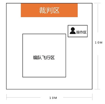 比赛场地包括裁判区、编程飞行区、操作区。比赛场地为边长10m的正方形区域。